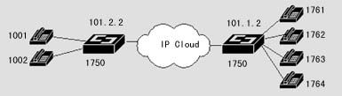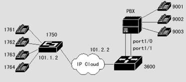 1720也可以通過器語音端口連接到PSTN,通過二次撥號,使得兩地的PSTN用戶可以通過IP網(wǎng)絡(luò)互相通話,而話費只是市話的費用。