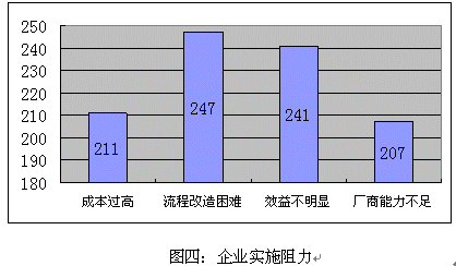 b)流程改造困難,對(duì)這個(gè)困難的擔(dān)心的企業(yè)數(shù)量最多,考慮到國(guó)內(nèi)企業(yè)的現(xiàn)實(shí)管理問(wèn)題,流程改造必然與現(xiàn)實(shí)的利益發(fā)生矛盾,引起的阻力不可輕視。