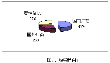 鑒于國(guó)內(nèi)并沒(méi)有知名度很高的CRM實(shí)施廠商,而國(guó)外的著名廠商在國(guó)內(nèi)的品牌宣傳也不足,所以調(diào)查表中只設(shè)了:國(guó)內(nèi)廠商、國(guó)外廠商和根據(jù)性價(jià)比進(jìn)行選擇三個(gè)項(xiàng)目,與購(gòu)買(mǎi)能力對(duì)照,預(yù)期實(shí)施金額在100萬(wàn)以下的企業(yè),一般側(cè)重國(guó)內(nèi)廠商,而實(shí)施金額在100萬(wàn)以上企業(yè)則側(cè)重國(guó)外企業(yè)。