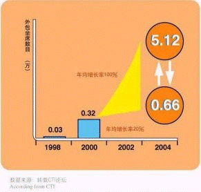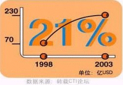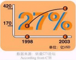 - 據(jù)CTI論壇轉(zhuǎn)引有關(guān)統(tǒng)計(jì)數(shù)字表明,全球呼叫中心外包市場1998年的產(chǎn)值為170億美元,2003年有望達(dá)到420億美元,并正以每年遞增27%的速度快增長;