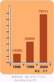 - 截至2000年底,我國總共擁有客戶服務(wù)中心座席數(shù)量7.9萬多個(gè)(不包括尋呼企業(yè)的座席數(shù)),市場總規(guī)模達(dá)到83.59億元。