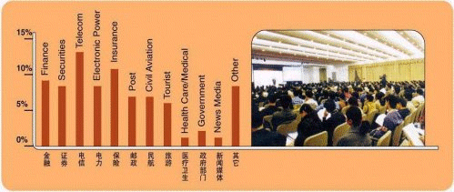 展會期間,我們將邀請近20,000名來自電信、保險(xiǎn)、銀行、證券、郵政、電力、民航、旅游、鐵路、物流、制造業(yè)、房地產(chǎn)、醫(yī)藥、政府部門及煙草等行業(yè)的專業(yè)觀眾前來參觀。