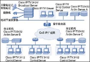 企業(yè)廣域網到分支機構的帶寬從128kbps到2Mbps,這樣高的帶寬為企業(yè)在廣域網上開展視頻廣播和視頻會議奠定了基礎。采用Cisco的基于IP的視頻系統(tǒng)IP/TV可以提供以下功能: