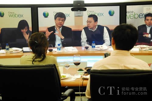 CTI論壇(ctiforum)5月6日消息(記者 楊佳林):中國,北京,2010年4月28日:無需像德國國防部長古滕貝格那樣駕車行駛3000多公里長途奔襲,跨越太平洋也一樣享受零距離的午餐。思科中國首席技術(shù)官梁永健、思科中國區(qū)副總裁華東區(qū)總經(jīng)理陳葵、思科WebEx研發(fā)及協(xié)作軟件全球副總裁袁征今天通過思科的網(wǎng)絡(luò)會議技術(shù)和中國知名博主在北京、上海和舊金山三地共進(jìn)午餐。