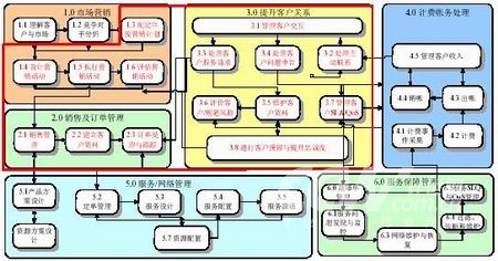 AIOpenCRM將重點(diǎn)支持客戶/市場(chǎng)層面的服務(wù)開通、服務(wù)保障的內(nèi)容,具體包含了市場(chǎng)營(yíng)銷、銷售及訂單管理、提升客戶關(guān)系、計(jì)費(fèi)帳務(wù)處理、服務(wù)開通管理、服務(wù)報(bào)障管理這六個(gè)高層流程的前三個(gè)。如下圖: