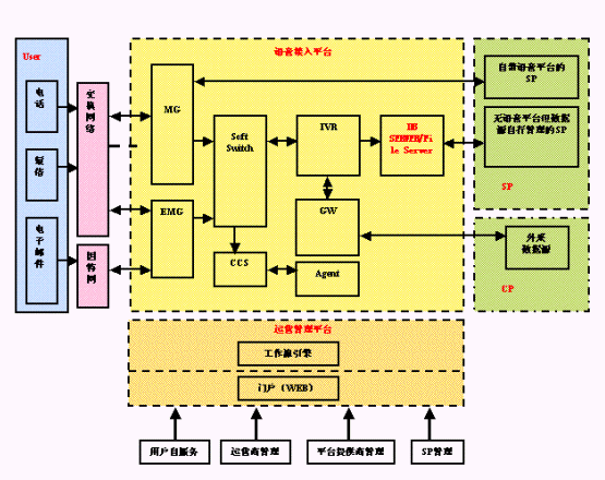 1、 IMSP平臺(tái)實(shí)現(xiàn)CTI+IN+IP技術(shù)特征融合,滿足業(yè)務(wù)層面需求多種資源,用戶提供同時(shí)包括語(yǔ)音、數(shù)據(jù)、視頻、無(wú)線的等業(yè)務(wù)在內(nèi)的綜合化服務(wù)。