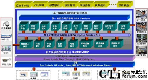 新太視頻監(jiān)控聯(lián)網(wǎng)管理平臺(tái)采用J2EE開放式架構(gòu),可以在WINDOWS/LINUX操作系統(tǒng)下運(yùn)行,具有強(qiáng)大的伸縮性。