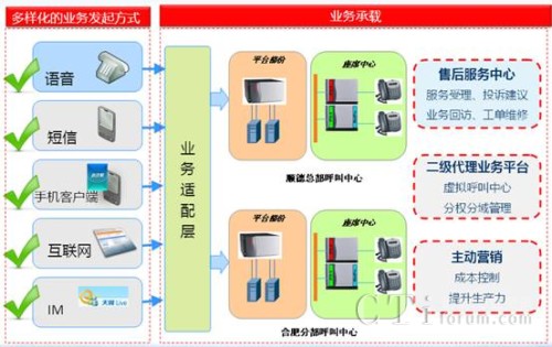 為了達(dá)到異地容災(zāi)的目的,新太科技為美的集團(tuán)在順德與和合肥分別設(shè)立了兩個呼叫中心,兩個呼叫中心通過廣域網(wǎng)絡(luò)連接起來。兩個呼叫中心都可以獨立運(yùn)作,同時又可以進(jìn)行統(tǒng)一管理。