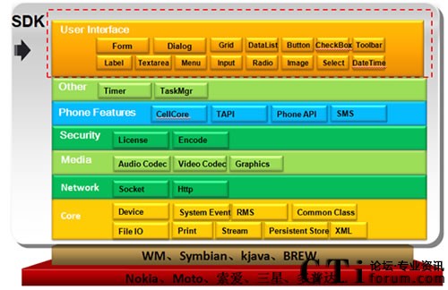據(jù)新太科技內(nèi)部相關(guān)人員介紹,mWAY的技術(shù)架構(gòu),一方面可以支持電信網(wǎng)絡(luò)各種各樣的接入,保證和運(yùn)營(yíng)商已有的網(wǎng)絡(luò)的互聯(lián)互通,同時(shí)也支持和移動(dòng)互聯(lián)網(wǎng)手機(jī)之間的連接,支持相關(guān)音頻、視頻的呼叫、傳送。業(yè)務(wù)接口可以給第三方應(yīng)對(duì)研發(fā)需求,手機(jī)終端有相關(guān)的引擎,滿足手機(jī)終端的業(yè)務(wù)研發(fā)的需求,這部分有一個(gè)手機(jī)客戶端軟件,是一個(gè)移動(dòng)性的引擎。這個(gè)引擎移植在手機(jī)終端客戶端上,給上層提供統(tǒng)一的解析開(kāi)放系統(tǒng)。