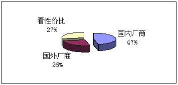 。5)向誰購買:鑒于國內(nèi)并沒有知名度很高的CRM實施廠商,而國外的著名廠商在國內(nèi)的品牌宣傳也不足,所以我們的調(diào)查表中只設(shè)了:國內(nèi)廠商、國外廠商和根據(jù)性價比進行選擇三個項目,與購買能力對照,預期實施金額在100萬以下的企業(yè),一般側(cè)重國內(nèi)廠商,而實施金額在100萬以上企業(yè)則側(cè)重國外企業(yè)。