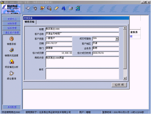 | 易達2001 CRM 助北京維康瑞提升客戶關(guān)系 2001-11-28 |