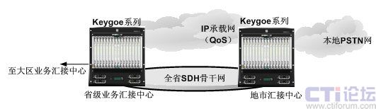 利用東進(jìn)Keygoe系列多媒體交換機(jī)構(gòu)建全省乃至于全國的綜合增值業(yè)務(wù)平臺,實現(xiàn)業(yè)務(wù)的全省或全國的統(tǒng)一運營。通過分布在不同地區(qū)的東進(jìn)Keygoe系列多媒體交換機(jī)實現(xiàn)業(yè)務(wù)的負(fù)載均衡、業(yè)務(wù)能力的冗余備份。其結(jié)構(gòu)圖如下圖所示。