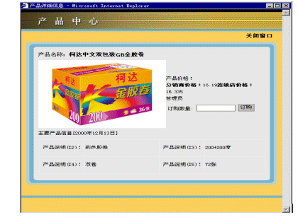 產(chǎn)品詳細(xì)信息中的產(chǎn)品價(jià)格會(huì)根據(jù)登錄者的不同身份給出不同等級(jí)的價(jià)格信息。在用戶瀏覽產(chǎn)品詳細(xì)信息的時(shí)候,也可以填寫(xiě)產(chǎn)品數(shù)量并選擇訂購(gòu)。