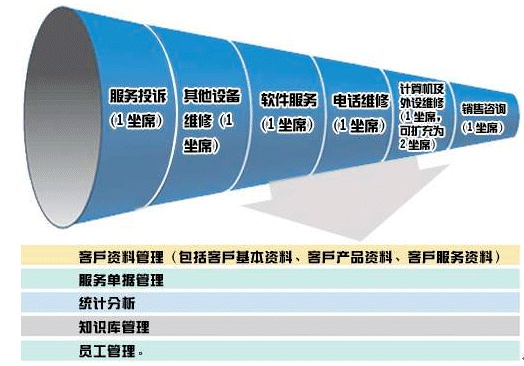每個(gè)模塊大致都有如下功能:客戶資料管理(包括客戶基本資料、客戶產(chǎn)品資料、客戶服務(wù)資料),服務(wù)單據(jù)管理,統(tǒng)計(jì)分析,知識庫管理,員工管理。但每個(gè)模塊所需記錄的內(nèi)容、服務(wù)處理流程不盡相同。