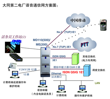 大同第二發(fā)電廠二期擴(kuò)建需要建設(shè)一個新的語音交換系統(tǒng),既用于電廠內(nèi)行政通信,又可以成為廠內(nèi)和公網(wǎng)語音通信匯接中心。