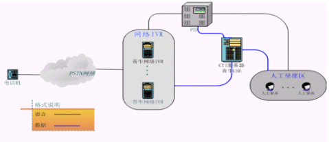 青牛IVR集群方案將原來放在PBX后面的IVR"前移",PBX的LINK只有和坐席相關(guān)的信息,大量的和IVR相關(guān)的呼叫信息被剝離出去,由青牛網(wǎng)絡(luò)IVR直接自行處理。根據(jù)統(tǒng)計(jì),自動(dòng)業(yè)務(wù)的呼叫量在整個(gè)客服中心呼叫量中占大多數(shù),當(dāng)呼叫量越大的時(shí)候,該方案的優(yōu)勢就越明顯。