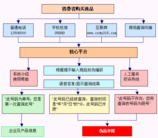 通過登錄www.csdn315.com,進(jìn)行商品真?zhèn)蔚牟樵,同時(shí)可以等到商品許多有用的相關(guān)信息。通過網(wǎng)站還將獲取防偽的相關(guān)資訊、購(gòu)物指導(dǎo)性建議、國(guó)家有關(guān)的防偽法律知識(shí);