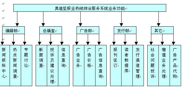奧迪堅(jiān)報(bào)業(yè)熱線綜合服務(wù)系統(tǒng)可以受理電話廣告預(yù)定業(yè)務(wù),以及廣告版面撤銷等服務(wù)。
