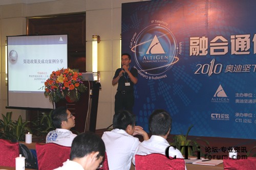 CTI論壇(ctiforum)9月10日消息(記者 楊毅):2010年9月9日奧迪堅在廣州市嘉鴻華美達廣場酒店舉辦的“下一代融合通信平臺華南研討會” 圓滿落下帷幕。本次會議以 “融合通信” 為主題,將最新的由“IPT、IPCC、UC和Mobility”四個部分組成的融合通信技術完美呈現(xiàn)在嘉賓眼前,吸引了業(yè)界眾多知名廠商和媒體,并得到了奧迪堅在各個行業(yè)的新老客戶的積極響應和參與。通過奧迪堅的精彩主題演講、現(xiàn)場的情景秀表演和眾多案例分享等多種形式,與合作伙伴及嘉賓共同探討融合通信技術該如何發(fā)展、解讀渠道新政策、同時更加深入了解奧迪堅產品,提高合作伙伴在市場上的競爭力。CTI論壇(www.zhaolingmuyuan.com)獨家承辦此次會議,并進行全程報道。