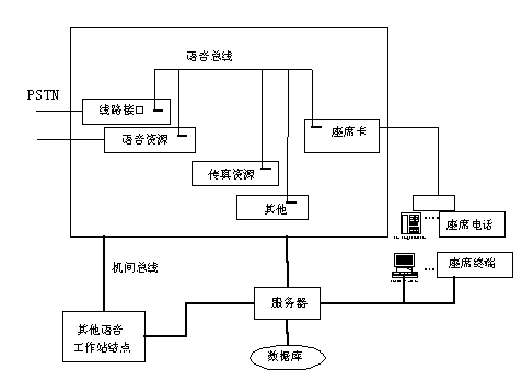 所謂的PC方式就是計算機+語音板卡,即在微機平臺上集成各種功能的資源處理卡,完成通信接口、語音處理、傳真處理、座席轉(zhuǎn)接等功能,再結(jié)合外部的計算機網(wǎng)絡(luò)實現(xiàn)各種應(yīng)用系統(tǒng)的需求。整個系統(tǒng)是一個Client/Server結(jié)構(gòu)的微機網(wǎng)絡(luò)。