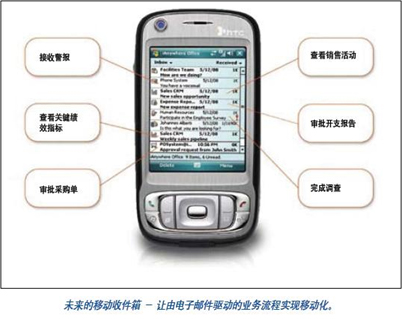 目前,無線電子郵件已經成為最受移動設備用戶歡迎的應用:它是一種簡單而高效的方法,工作人員可以隨時隨地保持聯系,進行溝通。然而,要讓工作人員在戶外保持像使用臺式計算機那樣的效率,無線電子郵件僅僅邁出了第一步。全天候的移動執(zhí)行力要求即使員工不在辦公室,也必須保證業(yè)務的連續(xù)性。由電子郵件驅動的業(yè)務流程,例如采購單、銷售訂單審批或租用申請都需要迅捷的行動,但目前這些流程只能借助臺式或便攜式計算機來完成。