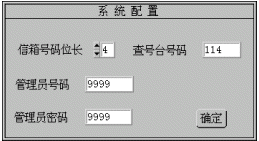 管理員號碼:管理員在系統(tǒng)維護(hù)時需拔打的信箱號碼(密碼缺省為9999)。