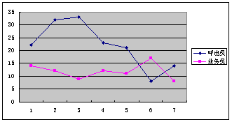 第五:考核指標及獎勵機制的建立:呼出人員必須有相應的考核辦法及獎勵機制,這從表1我們可以清楚地看到,呼出員的業(yè)績還不是很穩(wěn)定,有下降趨勢,而且幅度較大,這是由于在試運行期間沒有建立相應的考核指標及獎勵機制造成的,而有相應機制的業(yè)務員的業(yè)績相對要穩(wěn)定得多。當然富爾已經(jīng)意識到這個問題了,并采取了相應的措施,目前2個呼出人員每人每天均穩(wěn)定在1萬元左右,說明采取的措施得力。
