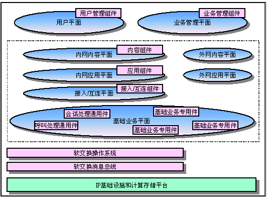 業(yè)務(wù)驅(qū)動軟交換平臺是建立在IP基礎(chǔ)設(shè)施之上的自我管理的分布式的開放網(wǎng)絡(luò)計算環(huán)境。是向下一代電信業(yè)務(wù)演進(jìn)的重要基礎(chǔ)設(shè)施。業(yè)務(wù)驅(qū)動軟交換平臺的結(jié)構(gòu)是組件式的。支持組件之間通信的軟交換硬件平臺、軟交換操作系統(tǒng)和軟交換消息總線將這些軟硬件組件構(gòu)成一個業(yè)務(wù)整體。同時,業(yè)務(wù)驅(qū)動的軟交換具備業(yè)務(wù)開發(fā)的支持工具以實現(xiàn)對業(yè)務(wù)的開發(fā)。這個軟交換平臺同時也具備對自身的管理功能。下圖描述了業(yè)務(wù)驅(qū)動軟交換平臺上的組件和它們的關(guān)系。