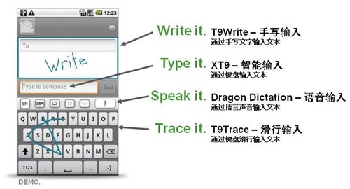 楊先生:Nuance T9 Trace解決了觸屏手機(jī)輸入文字的用戶體驗(yàn),適應(yīng)各種使用環(huán)境。另外,T9 Trace作為 XT9的插件,借助XT9的強(qiáng)大引擎提供周邊鍵盤(pán)自動(dòng)的糾錯(cuò)功能,它可以會(huì)根據(jù)按鍵組合智能猜測(cè)您所需要輸入的文字。我們可以看到國(guó)內(nèi)好多手機(jī)的屏幕都非常小,2000元級(jí)別的手機(jī)屏幕大概是2.8英寸甚至2.5英寸,如果你要點(diǎn)命中的機(jī)會(huì)率更低了。所以滑行上來(lái)講可以某程度上解決這方面的問(wèn)題。所以我們覺(jué)得這個(gè)滑行輸入法很有潛能的,特別是在中低端的Android平臺(tái)機(jī)型上。