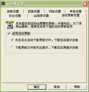 在QQ 2003中新增加了一項(xiàng)自動更新的功能,這樣在騰訊推出新版QQ之后,可以自行進(jìn)行下載和安裝,省去用戶麻煩。