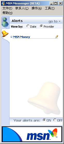 接收MSN Alerts發(fā)出的關(guān)于交通、新聞、天氣、體育、投資、旅游或收到新電子郵件時(shí)的通知