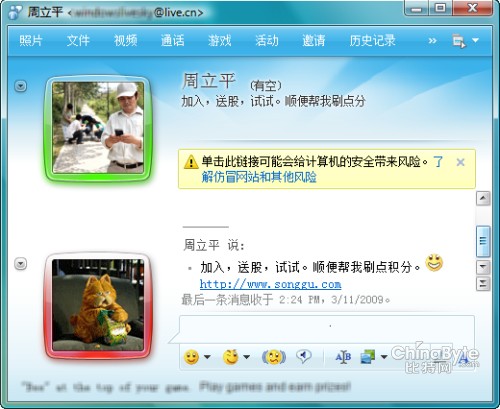 通常來說,用戶成為垃圾信息的目標(biāo)主要源于用戶泄露賬戶信息。一些未經(jīng)微軟認(rèn)證的第三方網(wǎng)站在會(huì)員注冊(cè)程序中為盜取用戶MSN賬號(hào)及密碼設(shè)下一個(gè)圈套,即要求注冊(cè)者提交MSN賬號(hào)和密碼。網(wǎng)站獲取到MSN用戶賬號(hào)和密碼后,通過架設(shè)的“機(jī)器人”服務(wù)器(即一種惡意程序,可通過自動(dòng)勘測(cè)方式,獲取用戶賬號(hào)密碼),自動(dòng)登錄該用戶Messenger,并按好友名單自動(dòng)傳播垃圾信息鏈接。一旦用戶以為是好友發(fā)送的,點(diǎn)擊這個(gè)鏈接后,自己的電腦也會(huì)感染,會(huì)再繼續(xù)自動(dòng)向其他好友發(fā)送同樣的廣告信息鏈接,就這樣,呈幾何級(jí)數(shù)進(jìn)行傳播。