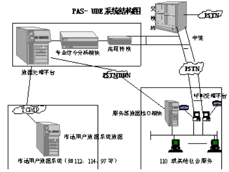 為了滿足各類社會(huì)應(yīng)急與服務(wù)呼叫系統(tǒng)對(duì)電話用戶資料的需要,同時(shí)又解決電信部門對(duì)用戶資料數(shù)據(jù)庫的保密和安全要求,我公司成功開發(fā)了PAS-UDE(User Data Extract)電話信息回送系統(tǒng),并成為110聯(lián)網(wǎng)接口設(shè)備開發(fā)生產(chǎn)入網(wǎng)廠商。