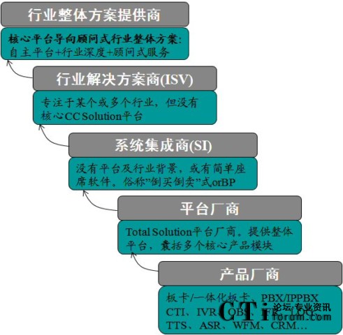 第一,建設(shè)需求的變化。不管客戶(hù)通過(guò)自建還是托管甚至租賃方式擁有自己的呼叫中心(哪種方式在哪個(gè)階段更適合企業(yè),本次不討論,有機(jī)會(huì)再分享),10年前包括現(xiàn)在建設(shè)非營(yíng)利性呼叫中心大多數(shù)企業(yè)是處在滿(mǎn)足有沒(méi)有的底層需求階段(物質(zhì)需求階段),那個(gè)階段建設(shè)呼叫中心目標(biāo)更多是解決有沒(méi)有問(wèn)題,并有一個(gè)明顯的時(shí)代烙。鹤钯F的就是最適合的,最貴的就是最好的,最貴的就是高枕無(wú)憂(yōu)的……而那個(gè)時(shí)代國(guó)外廠(chǎng)商瘋狂“給力”國(guó)人,大發(fā)橫財(cái)。10年后的當(dāng)今大多數(shù)企業(yè)呼叫中心處在好不好的階段(精神需求階段)。有過(guò)一次甚至多次建置經(jīng)驗(yàn)的企業(yè),特別是國(guó)內(nèi)呼叫中心發(fā)展比較早及成熟的行業(yè),如:運(yùn)營(yíng)商、大金融(國(guó)有銀行、發(fā)展好的股份制商行與國(guó)有及商業(yè)保險(xiǎn)公司)、部分盈利型企業(yè)客服(呼入或呼出型電商、營(yíng)銷(xiāo)、外包客服等)大多數(shù)很理性,不再被沾沾自喜的國(guó)外廠(chǎng)商品牌、不再被廠(chǎng)商的某個(gè)技術(shù)、廠(chǎng)商多少?lài)?guó)外成功案例等表象所迷惑。目前主流客戶(hù)需要的是有深度行業(yè)背景及積累,特別是行業(yè)理解力,并對(duì)客戶(hù)需求非常清晰的能提供顧問(wèn)式行業(yè)整體解決方案的合作伙伴,總而言之,現(xiàn)在客戶(hù)需要的合作伙伴就是:一要深度行業(yè)背景及積累、二具備顧問(wèn)式業(yè)務(wù)理解及交付能力、三能真正提供基于核心通信及業(yè)務(wù)平臺(tái)的顧問(wèn)式整體解決方案能力?傊,當(dāng)今及未來(lái)一段時(shí)間內(nèi)中國(guó)CTI、呼叫中心等客戶(hù)需求變化就是全產(chǎn)業(yè)鏈的深度需求。對(duì)相關(guān)廠(chǎng)商或解決方案提供商而言,誰(shuí)能掌控并行之有效的為各行業(yè)客戶(hù)提供CTI產(chǎn)業(yè)鏈更多價(jià)值環(huán)節(jié),誰(shuí)就是客戶(hù)真正需要也是想要的伙伴,也是未來(lái)CTI業(yè)相關(guān)廠(chǎng)商或解決方案提供商發(fā)展之道。