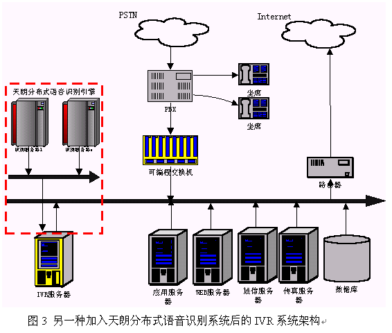 隨著語音識別的實用化進程加快,人們越來越認識到采用語音識別技術(shù)有利于極大的提高傳統(tǒng)按鍵方式IVR界面的友好性,提高服務的質(zhì)量。另外,采用語音識別技術(shù)可以把以前不可能實現(xiàn)的事情變得可行。因此,目前IVR行業(yè)越來越多的人認識到語音識別技術(shù)的重要性,一些先行者已把語音識別技術(shù)集成到他們的系統(tǒng)中。那么,一個IVR廠商如何把天朗分布式語音識別系統(tǒng)集成到他們的IVR中呢?