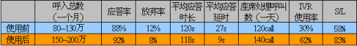 平均每個(gè)單位的呼叫整體成本降低了0.23美金,按照每年最少1800萬(wàn)次呼叫計(jì)算,每年節(jié)省了400多萬(wàn)美金的費(fèi)用。該系統(tǒng)有1000個(gè)座席,2000路的自動(dòng)語(yǔ)音應(yīng)答系統(tǒng)(IVR),采用的是UNIX操作系統(tǒng),ORACLE的數(shù)據(jù)庫(kù)系統(tǒng)。