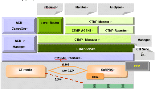 。。以CCP(The Intel Converged Communications Platform)為基礎(chǔ)的CTMP Suite系統(tǒng)軟件是由6大模塊組成的,它的每個(gè)子系統(tǒng)都能執(zhí)行對(duì)呼叫中心內(nèi)發(fā)生的所有通話、事件(event)、數(shù)據(jù)進(jìn)行實(shí)時(shí)監(jiān)控、分析、處理等核心功能。