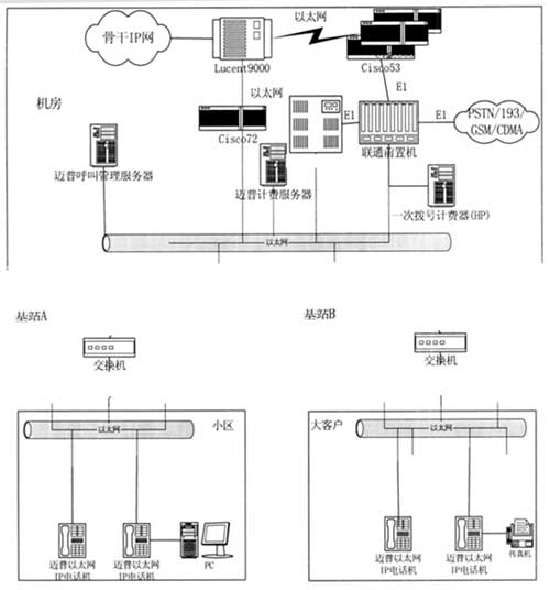 。。在兩個方案中,采用了邁普呼叫管理服務(wù)器、計費服務(wù)器以及以太網(wǎng)IP電話機,分別擔(dān)任呼叫、話音計費等網(wǎng)絡(luò)管理工作。