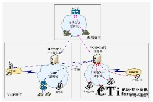 強大的系統(tǒng)融合能力:可以與傳統(tǒng)H.323的電視電話會議系統(tǒng)互通,以較低的成本把電視電話會議的音視頻延伸至基層;還可以與傳統(tǒng)的IP電話網(wǎng)融合,使用戶通過PSTN電話也能訪問協(xié)同服務器,隨時隨地實現(xiàn)音頻參加會議。