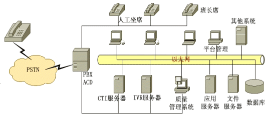 負責(zé)座席話機與計算機的同步,話務(wù)員在接到電話的同時,屏幕上已經(jīng)同步地顯示出該客戶的相關(guān)信息,使話務(wù)員可以針對客戶記錄為客戶提供更為體現(xiàn)的個性化服務(wù)。PBX/ACD、IVR和座席之間關(guān)于呼叫控制和信息傳輸都是通過CTI服務(wù)器完成的,是呼叫中心通信中樞神經(jīng)系統(tǒng)。