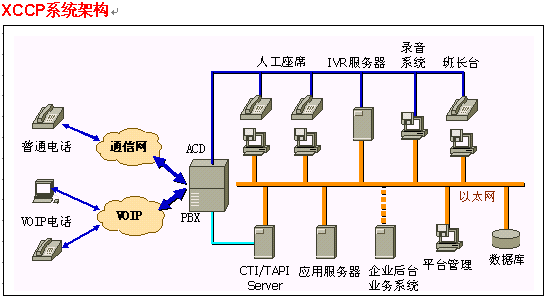 新一代PBX和iPBX幾乎都支持TAPI接口,XCCP通過對各種版本的TAPI的支持,為用戶提供靈活的呼叫中心組網方案,在這種情況下,TAPI可以代替CTI服務器所有作用,完成傳統(tǒng)CTI服務器的所有功能,減少用戶預算,降低系統(tǒng)成本。