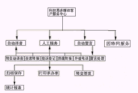 企業(yè)或個(gè)人打入電話后,可以選擇人工服務(wù),同座席話務(wù)人員直接溝通,由話務(wù)人員將企業(yè)或個(gè)人反映的問題和提出的建議意見記錄下來,并同時(shí)記錄下該客戶的聯(lián)系方式,將相關(guān)數(shù)據(jù)添加入系統(tǒng)數(shù)據(jù)庫(kù);也可以在數(shù)據(jù)庫(kù)的支持下回答企業(yè)或個(gè)人對(duì)科技成果和政策法規(guī)的咨詢和疑問。企業(yè)或個(gè)人也可以選擇自動(dòng)語音服務(wù)方式,根據(jù)系統(tǒng)的語音提示輸入按鍵,選擇類別,將自己的投訴和建議以及自己的聯(lián)系方式信息以留言錄音的方式保存在系統(tǒng)中。系統(tǒng)同時(shí)還支持自動(dòng)傳真方式,企業(yè)或個(gè)人可以通過傳真機(jī)打通客戶服務(wù)中心,通過按鍵選擇傳真方式,將自己的意見建議等的文本內(nèi)容傳真給系統(tǒng),系統(tǒng)自動(dòng)接受并存入數(shù)據(jù)庫(kù)。