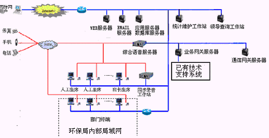 該系統(tǒng)利用環(huán)保局現(xiàn)有的信息網(wǎng)絡(luò)資源,將自動(dòng)語(yǔ)音查詢、人工服務(wù)、信息資料處理緊密結(jié)合起來(lái),為人民群眾提供全天候24小時(shí)不間斷的優(yōu)質(zhì)服務(wù)。