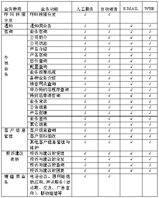 通知類業(yè)務(wù):對某些特定的對象通過自動(dòng)呼出或人工呼出進(jìn)行通知,實(shí)現(xiàn)政策法規(guī)、專題的通知,方式可以是電話、傳真、電子郵件、短消息、網(wǎng)站等。