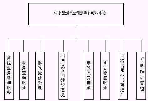 客戶利用電話、手機(jī)等撥打某一特服號(hào)碼(如9xxxx)進(jìn)入中小型煤氣公司多媒體呼叫中心系統(tǒng),本系統(tǒng)依托煤氣公司各類(lèi)業(yè)務(wù)技術(shù)支持系統(tǒng)和網(wǎng)絡(luò)系統(tǒng),通過(guò)人工受理或自動(dòng)語(yǔ)音服務(wù)等方式全天24小時(shí)不間斷地為客戶提供各種服務(wù)。