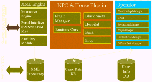 基于上述的因素,北京市萬(wàn)隆然博科技有限責(zé)任公司率先在國(guó)內(nèi)推出了無(wú)線互連游戲平臺(tái),把游戲的快速開(kāi)發(fā)、游戲的運(yùn)行引擎和游戲的客戶(hù)服務(wù)管理集成在一體。方便了短訊運(yùn)營(yíng)商的運(yùn)營(yíng)。同時(shí),然博科技通過(guò)分析各類(lèi)游戲的特點(diǎn)和無(wú)線交互方式的特點(diǎn)。具有獨(dú)創(chuàng)性的推出了一種游戲描述XML格式。通過(guò)然博科技提供的離線工具,游戲策劃人可以自己編寫(xiě)腳本,自己定義場(chǎng)景,進(jìn)行仿真。同時(shí),上傳到實(shí)際運(yùn)行的服務(wù)器端。真正的實(shí)現(xiàn)了短信門(mén)戶(hù)的個(gè)人創(chuàng)作工具。使得短信門(mén)戶(hù)真正的可以與傳統(tǒng)的Web門(mén)戶(hù)有相同的運(yùn)營(yíng)模式。ICP可以通過(guò)出賣(mài)短信服務(wù)器的硬盤(pán)空間來(lái)實(shí)現(xiàn)與內(nèi)容宿主共同盈利的模式。