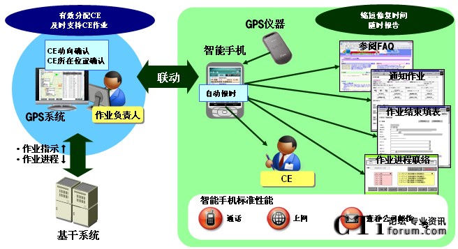“MoBiz AP for CE支持系統(tǒng)”是在支持保修人員在工作現(xiàn)場作業(yè)的同時,實(shí)現(xiàn)總部對工作現(xiàn)場“可視化”管理的應(yīng)用程序軟件包。
