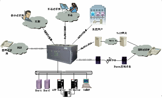 該系統(tǒng)是基于開放式可編程交換平臺,以開放式、模塊化的設(shè)計(jì)思想,采用業(yè)界最先進(jìn)的開放式可編程交換技術(shù)、信令網(wǎng)關(guān)技術(shù)、媒體網(wǎng)關(guān)技術(shù)、IVR技術(shù)和網(wǎng)絡(luò)技術(shù),專門為電信運(yùn)營商設(shè)計(jì)的能無縫融合多種網(wǎng)絡(luò)、在同一平臺上靈活提供多種電信增值業(yè)務(wù)的運(yùn)營級綜合業(yè)務(wù)平臺系統(tǒng)。它融入了眾多電信業(yè)務(wù)轉(zhuǎn)售商、IP電話運(yùn)營商、虛擬電信運(yùn)營商和增值電信服務(wù)商的實(shí)際運(yùn)營經(jīng)驗(yàn),以強(qiáng)大的功能和實(shí)用性幫助新興的中、小型電信運(yùn)營商快速進(jìn)入國際、國內(nèi)長途電話話務(wù)轉(zhuǎn)售、預(yù)付費(fèi)電話卡、后付費(fèi)電話、自動(dòng)呼叫轉(zhuǎn)移等市場,提高效率并獲取最大的收益和回報(bào)。