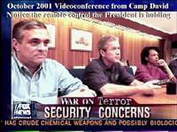 遠程安全會議,布什總統(tǒng)手持TANDBERG的遙控器親自進行操作。