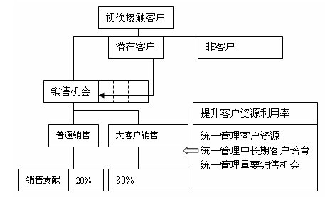 客戶信息的共享和利用不好:隨著企業(yè)業(yè)務(wù)的發(fā)展,一般會(huì)在產(chǎn)品線、行業(yè)(客戶群)、區(qū)域等發(fā)展和滲透,而客戶信息全部存在業(yè)務(wù)員和不同的業(yè)務(wù)部門(mén),一方面客戶信息的規(guī)范沒(méi)有,離散,不可利用,另一方面無(wú)方法和機(jī)制保障各業(yè)務(wù)部門(mén)的共享和業(yè)務(wù)協(xié)同,通常會(huì)出現(xiàn)幾個(gè)業(yè)務(wù)部門(mén)搶同一個(gè)客戶;更可怕是業(yè)務(wù)調(diào)整和變動(dòng),以及人員的流動(dòng)造成客戶資源的流失,出現(xiàn)客戶管理的盲區(qū)。